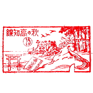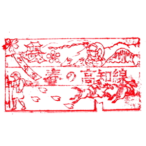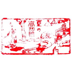 (土佐山田〜須崎、高知線) 引続き土讃本線の、土佐山田から先、当時の終点までのスタンプを紹介して行こう。 当時はこの区間、高知線と呼ばれており、1924年(大正13年)に開業した。高知線の戦前スタンプは、 日付印で無かったようで、正確な押印日付がわからないのが残念だが、 下に紹介したのは1932年(昭和7年)〜1934年(昭和9年)の印影と思われる。 当時の終点は須崎であった。なお、観光PR用に、高知線の春夏秋冬を描いた4つのスタンプがあったので、紹介しておく。 |