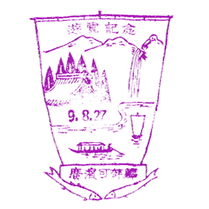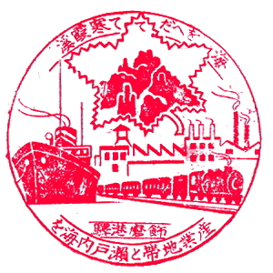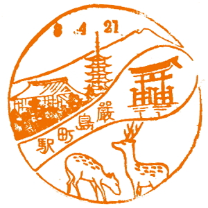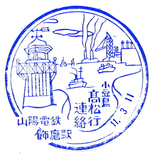 周防富田駅は、現在の新南陽駅である。徳山駅は当時、軍港として、工業の中心都市として栄えていた。 スタンプには軍艦の姿も。徳山から岩国までは、今の山陽本線と岩徳線の2つのルートがある。 岩徳線はあとから出来た内陸短絡線だったが、本線は海沿いの線路の方のまま、現在に至った。 岩徳線・玖珂駅は1987年にそこかすろうさんが押された印影。戦前スタンプがそれまで残っていたそうだ。 虹ヶ浜駅は現在の光駅。山陽本線は海沿いに進む。この当時の岩国駅は、現在の岩徳線・西岩国駅。 スタンプは錦帯橋を左右から描いた2種があったようだ。麻里布駅が現在の岩国駅である。 宮島駅は今の宮島口駅。当時も多くの参拝客でにぎわっていた。連絡船のスタンプも紹介しよう。 |