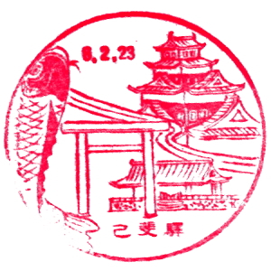 蔵王帖の解説を紹介しよう。 右片ノ城跡ハ広島城(鯉城トモイウ)其ノ前面ヲ流ルルハ太田川。 鳥居ノ傍ニアルハ日比谷公園ノ御便殿(日露ノ役明治大帝大本営)。 左方ノ鯉ハ昔鯉ト云ヒタリシテ今己斐ト云フヲ調セルモノ |