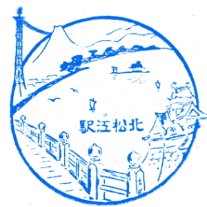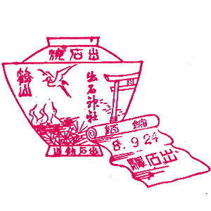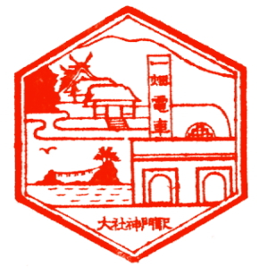 大社鉄道開通記念スタンプ (江戸川台さんご提供) 出雲今市(現・出雲市駅)〜大社間を走っていた大社線は、1912(明治45)年に開通。 開通記念はがきにスタンプが押されていたそうで、江戸川台さんから印影を頂いた。 いずも・きづきの文字が見られるが、当時大社駅あたりは、杵築町だったとの事。 この時建てられた大社駅は、重厚な木造駅舎で、今も国の重要文化財として残る。 残念ながら、1990(平成2)年に廃線。私は一度だけ乗ることができた。