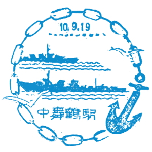 京鶴鉄道開通記念スタンプ (江戸川台さんご提供) 最後に紹介するスタンプは、1910(明治42)年8月25日に、京都と舞鶴間の鉄道が繋がったことを記念して、 胡麻駅で販売された絵はがきに押印されていたものである。一般的に、駅スタンプが単体で駅に置かれたのは、 昭和になってからとされているが、それよりずっと前から、絵はがきに押されたスタンプは存在していたのである。 大変貴重な資料と言えよう。こちらも江戸川台さんに頂いた印影である。