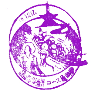 山陰本線の終点・京都に向かう前に、宮津線のスタンプを紹介していこう。 豊岡から分岐して舞鶴駅(現・西舞鶴駅)までの路線である。その途中、丹後山田駅(今の京都丹後鉄道・与謝野駅)からは、 ニッケル鉱石の輸送のために作られ、旅客も運んでいた加悦鉄道が分岐していた。1985(昭和60)年に廃止されている。 日本三景・天橋立は当時も人気の観光地だった。ケーブルカーの開通記念のスタンプは、昭和2年のものでとても古い。 舞鶴駅からは、舞鶴線となる。中舞鶴駅に向かう支線が分岐していた。舞鶴は重要な軍港で、一日5000人もの乗客を運んでいた。 その役割が終わり、支線は1972(昭和47)年に廃止になっている。新舞鶴駅は、今の東舞鶴駅。軍艦が大きく描かれた。 綾部駅に出て、山陰本線の終点、京都を目指そう。製糸業が盛んだった綾部駅のスタンプには、蚕が描かれていた。 |