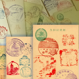 こちらも50枚ほどの官製はがきのセットであり、郵便局の風景印とともに、