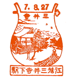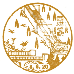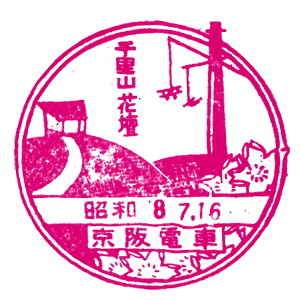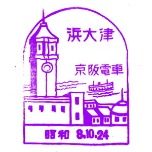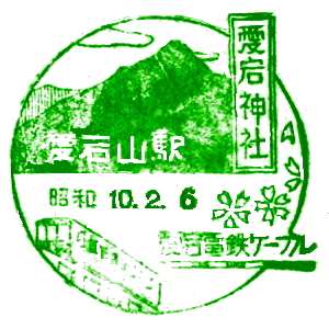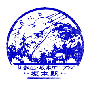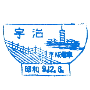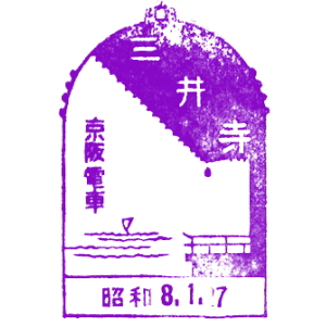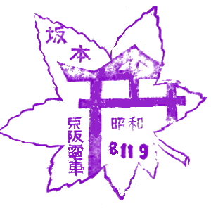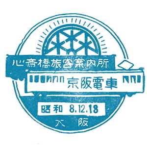 大阪と京都の間には、早くから私鉄の線路網も発達していた。 京阪電気鉄道は1910(明治43)年に、大阪・天満橋〜京都・五条駅間を開業させた。 淀川の南側を走る、今の京阪本線だ。 石清水八幡宮参道ケーブルは1926(大正15)年に開業、その後京阪傘下に。 ここには古くから記念スタンプが置かれたようだ。京阪の路線はその後、 宇治、石山寺、浜大津へと伸び、琵琶湖周航の汽船にも出資した。 |