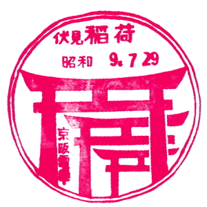 まずは東海道本線。大阪から京都迄の戦前スタンプを紹介しよう。 吹田には当時から車両基地があったようで、スタンプには一編成だけ、SLが並んでいる。 近くにビール工場があったが、2枚目のスタンプではビールのメーカ名が消えている。 鉄塔はNHKの放送局のようだが、こちらもコールサインが消えている。大人の事情があったのであろうか、面白い。 神足駅(こうたり)は、今の長岡京駅。京都駅のスタンプは真ん中にスペースが開いているが、 ここに日付が入っていたのだろうか?押す人が多くて、壊れてしまって外したのかもしれない。 京都市電は、1895(明治28)年に開業、日本最初の電車であった。 その後網の目の様に市内に路線を伸ばし、駅数163、路線総延長68.3kmにもなったそうだ。 残念ながら電停には場所が無かったせいかスタンプはあまりなかったようだが、 稲荷駅のスタンプ印影があったので紹介しよう。 |