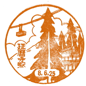 次は京都市内を今も走る鉄道路線である。嵐電から、四条大宮、北野、嵐山の各駅のスタンプを紹介する。 北野駅は1958年に廃止され、今は北野白梅町が終点になっている。叡電は今と路線は変わらない。 八瀬駅が、八瀬比叡山口駅へと駅名が変わったぐらいである。 嵐山からは愛宕山鉄道が清滝までを運行し、さらに愛宕山に登るケーブルカーがあった。 しかしこれは、戦時下の1944(昭和19)年に廃止。 西塔橋駅は、現在の叡山ケーブル・ケーブル八瀬駅、四明ヶ嶽駅(しめいがたけ)が登った終点、 現ケーブル比叡駅である。戦前はさらに「叡山空中ケーブル」と言うロープウエイに、 高祖谷駅から乗り継ぎ、延暦寺駅まで行く事も出来たが、やはり戦時下に廃止された。 |