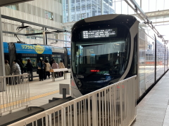 | さて今回、広島駅で途中下車したのは、お好み焼きが食べたかった意外に、もう一つ理由があった。 昨年、広島駅の駅ビルはリニューアルし、以前は駅前に一度出なければ乗り換えできなかった市電に、 駅の中から乗れるようになった。その様子を見たかったのである。 駅ビルの2階に、市電の3路線のホームが並び、沢山の人が乗降している。雨の日も濡れることなく、 ここから乗り換えられるんだなあ。これは便利、そしてカッコイイ。もう一階上がった3階から、 その様子を俯瞰しながら、しばし市電の到着と出発の様子を眺めた。 |
