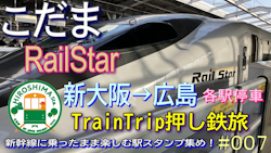 500系こだま号は、西へと快走する。TrainTrip印は、 新岩国駅には未設置、徳山駅・新山口駅は獲得・紹介済みである。 |