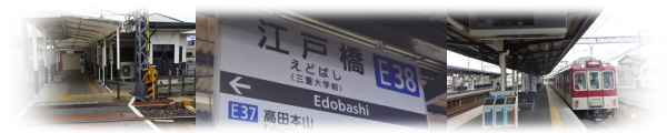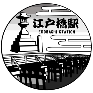 (近鉄・名古屋線) エキタグ/江戸橋 次の15:23発の、普通四日市行きに乗る。もう少しだけエキタグを集めて置きたいので、 次の津では下車せず、その先の江戸橋駅まで乗っていく、15:30着。 ここは昔の津の街の、北側に当たる。江戸橋という地名の由来は、津城下を通っていた 伊勢路の街道の、江戸側に向かう所に掛かっていた橋を、江戸橋と言ったことに由来する。 エキタグに描かれているのも、その江戸橋である。 |  *AKINA*さん先行押印 |