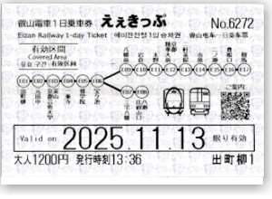 (叡電) エキタグ・100周年バージョン 京都に紅葉の名所はたくさんあるが、鉄道であれば、叡電に乗って鞍馬に行く途中の、紅葉のトンネルであろう。 久しぶりに訪問してみようと思う。新しいスタンプもいろいろ押せそうである。地上に出て、叡電の出町柳駅へ。 鞍馬まで行って、途中下車もするつもりなので、フリーきっぷ「ええきっぷ」を購入した。1200円。 現在叡電には、全駅にリアルスタンプとエキタグが設置されている。時間の関係で全部は回れないが、 まずは出町柳駅で押して行こう。ここでは100周年のロゴが入った、エキタグを紹介しておこう。 |