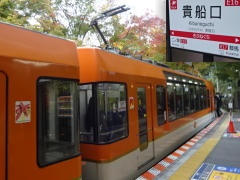 (叡電) エキタグ・100周年バージョン きららの広い窓からわずかな時間だけ紅葉を楽しみ、14:37、貴船口駅着。 この駅には下車したことが無かったので、一度来てみたかったのである。 念願のスタンプとエキタグを押して、駅の外に出てみると、素晴らしい紅葉が広がっていた。 清冽な水の流れる、この川をさかのぼっていくと貴船神社があるが、階段が多いはずなので今日はやめておこう。 駅の周囲の紅葉を眺めるだけで十分だ。 駅前の道には思い出がある。昔、パソコン通信の自転車サークルに入っていたころ、この道をみんなで自転車で下った事がある。 若い頃は自転車で旅をした。仕事をリタイヤしたら、また自転車旅もしてみたいなと思った。 |