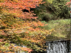 ふと見ると「クマ出没注意」と書かれていて、ちょっとゾッとした。 今年は森の食べ物が不作らしく、日本各地でクマが里に下りてきて、人が襲われ、何人も犠牲者が出ているという。 ここにも出没したのか?と焦ったが、良く見ると、ここでクマが目撃されたのは3年前と書いてあり、ちょっと安堵した。 次の電車の時間まで、紅葉の鮮やかな色彩と、水の流れる音を楽しんだ。 |