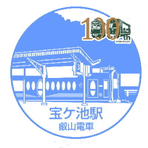 (叡電) エキタグ・100周年バージョン 良い天気である。バスは5分程で、宝ヶ池のバス停についた。叡山電車の駅前である。 前回このスタンプラリーに来た時も、叡電に寄り道した。その時は鞍馬まで行ったけれども、 この駅から分かれる、八瀬比叡山口の方には行かなかった。今日はそちらに行ってみようと思う。 まずは、この駅に設置されているスタンプと、エキタグを押して行こう。 ここでは、叡電100周年のロゴの入った、エキタグを紹介しておこう。 |