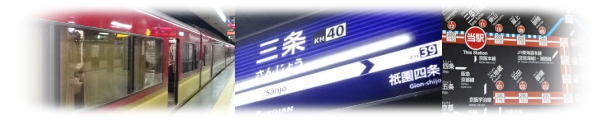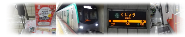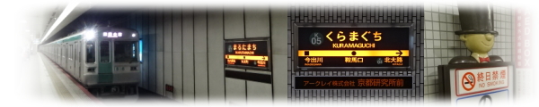 | さすがに祝日である。京都駅からは多くの観光客が乗車してきて、電車の中はいっぱいになった。 一番混むのは、東西線と乗り換えができる烏丸御池駅までである。そこを過ぎれば、混雑は少しマシになった。 |