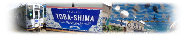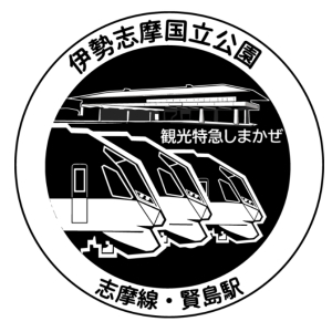 (近鉄/鳥羽線) エキタグ 志摩マリンレジャー「龍宮城」 無人化されてしまい、寂しいJRの鳥羽駅の改札を抜け、階段を渡って線路を越えて、 近鉄の鳥羽駅へ。ここから賢島までは、特急で一気に行ってしまうことにした。 きっぷを買った後、忘れないように、鳥羽駅のエキタグを押して行かねば。 鳥羽湾の観光船「竜宮城」が描かれた、なかなか手の込んだデザインであった。 14:13の特急・賢島行きに乗る。 しばらく山の中を走るが、志摩磯部のあたりでは内海が広がり、鵜方を過ぎると橋を渡って、 賢島へと進んで行く。KK氏は意外にもこのあたり、未乗車だったそうだ。 |