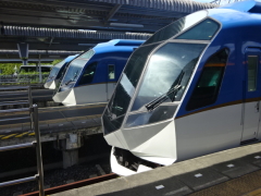 43年ぶりのKK氏との賢島駅再訪は、なんとも感慨深い。 居合わせた人に頼み、しまかぜをバックに2人で記念の写真を撮ってもらった。 |