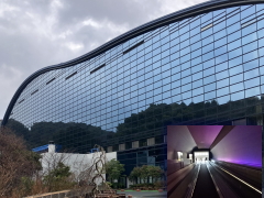 ただバスは、太宰府駅に着く前に、一度行ってみたかった、九州国立博物館前のバス停で止まったので、 ここで降りることにした。膝が悪いのに長い階段を上がる羽目になったが、目の前には巨大な博物館の建物が現れた。 時間のロスのために、見学時間が無いので、このまま長い連絡通路(動く歩道!)を通って、天満宮へ。 |