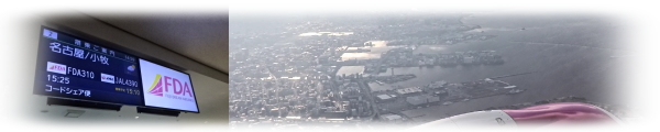 15:25発のFDA301便、県営名古屋空港行きに搭乗し、空へ。 眼下に、奴国の時代から続く博多の街と、渡来人が渡ってきた玄界灘が見えた。 |