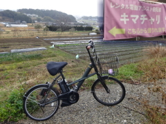 駅前の自転車置き場に並んだレンタサイクルから、